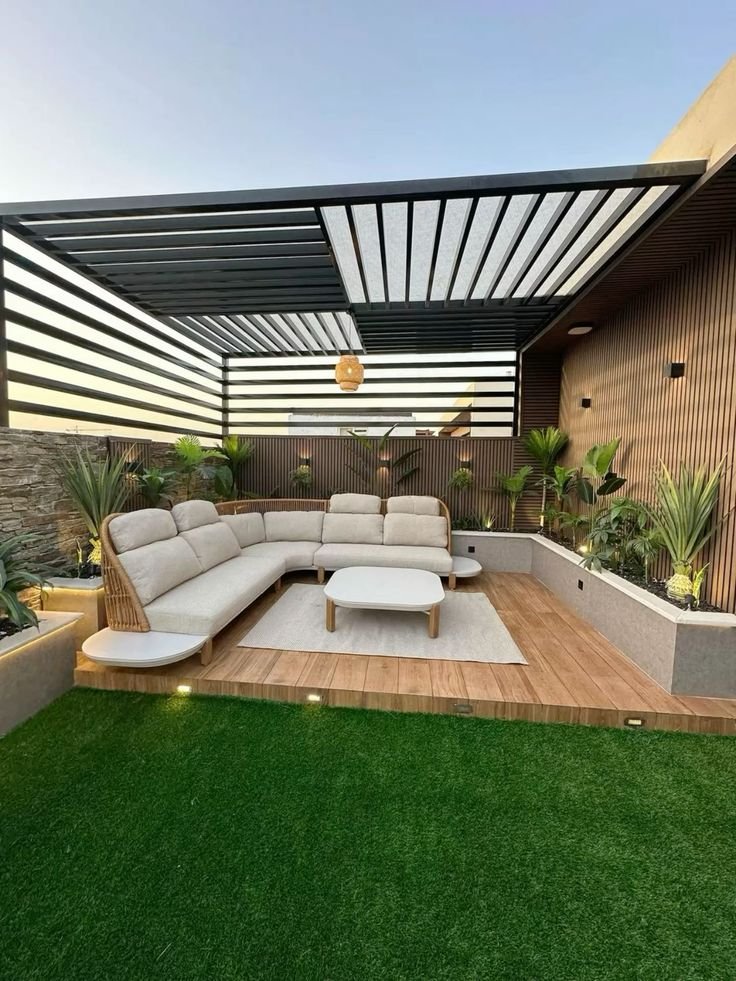 تصميم الجلسات الخارجية لم يعد مقتصرًا على المقاعد والطاولات، بل تحول إلى مفهوم شامل يشمل العناصر التالية: