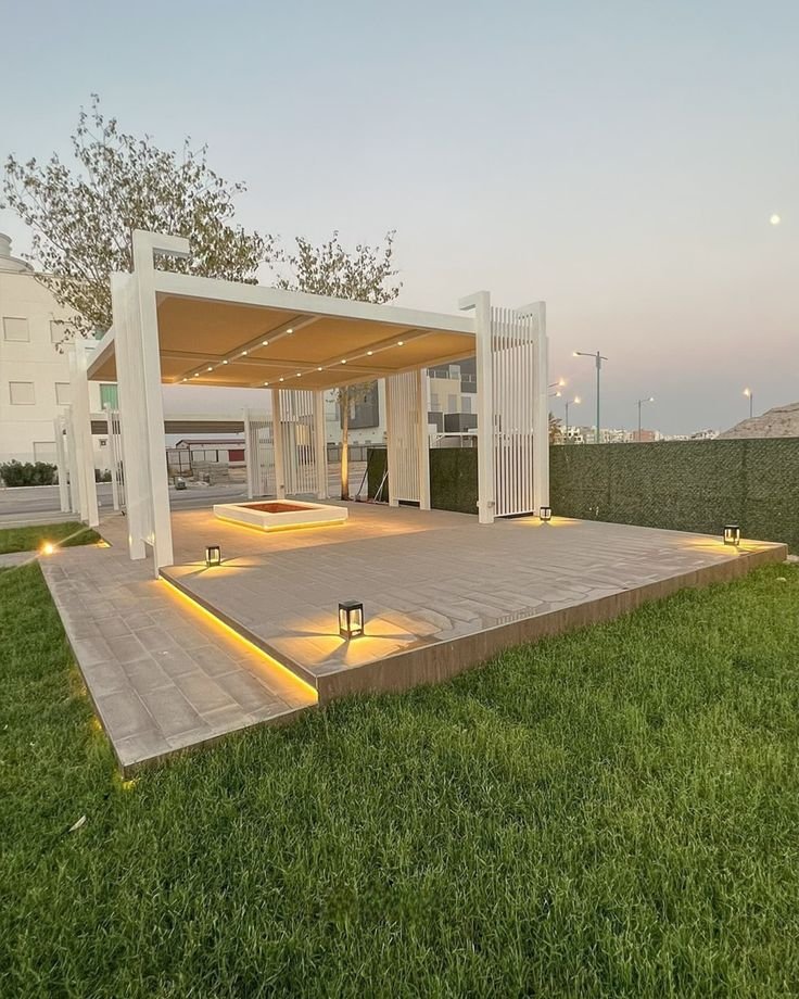 - التصميم المبدئي: إعداد مخططات هندسية توضح شكل البرجولة أو المظلة، نوع السقف (خشب، ألمنيوم، قماش مشدود، زجاجي، مُعزّل) والألوان المناسبة.